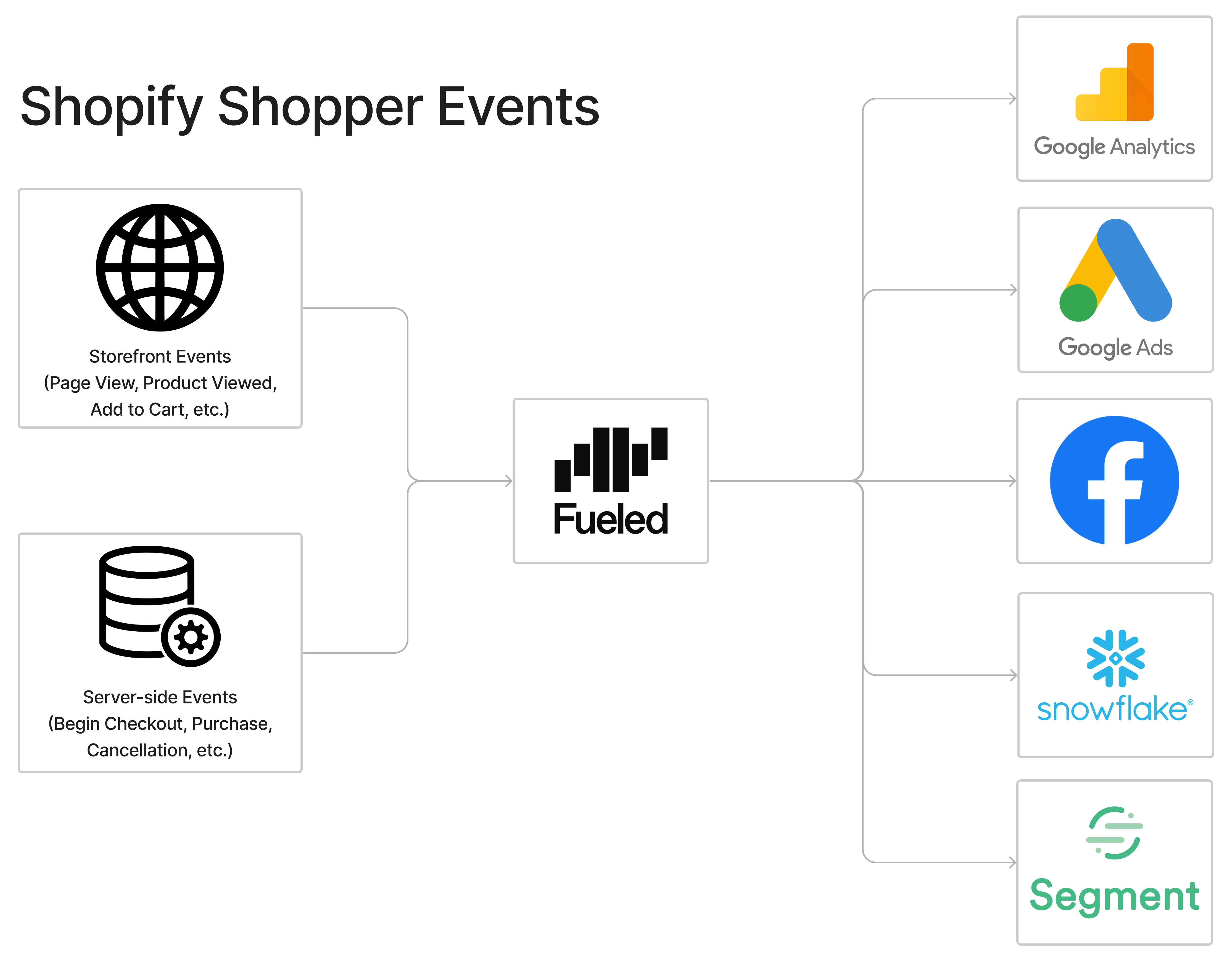 <figure><img src="https://1909034781-files.gitbook.io/~/files/v0/b/gitbook-x-prod.appspot.com/o/spaces%2FylSuLl56TLCrQceIL9Bo%2Fuploads%2FqRw3EyzBFk3D7zlysj1r%2FLearning%20site%20graphics.%20(2).png?alt=media&#x26;token=5ae84eef-fe63-4734-97a0-2d6c252c41ac" alt=""><figcaption><p>Visualization of how Fueled collects client-side &#x26; server-side events, and sends them to various analytics &#x26; advertising platforms.</p></figcaption></figure>